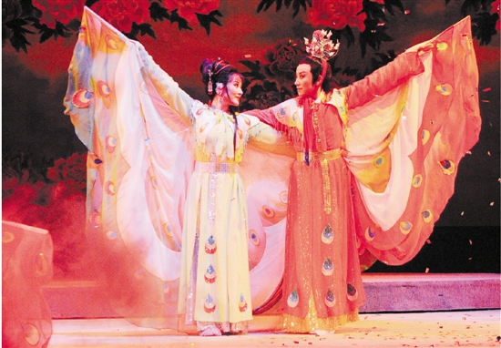吴凤花(右)在越剧《化蝶》中饰演梁山伯。