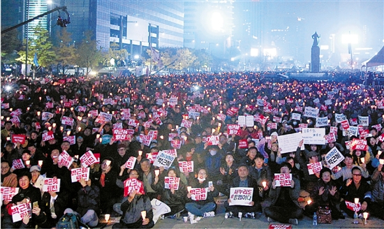 11月5日,约4.5万名韩国民众在首尔参加要求总统朴槿惠下台的集会活动。 新华社发