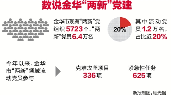 金华市现有“两新”党组织5723个、“两新”党员6.4万名