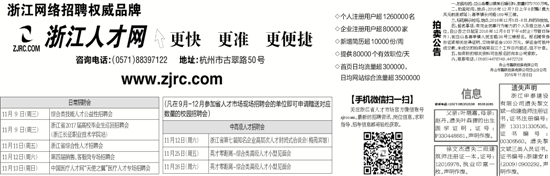 | 11月11日(周五) | 浙江省综合性人才招聘会 |