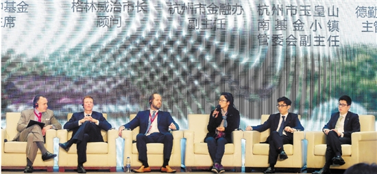11月8日,玉皇山南基金小镇与美国格林威治市代表团进行“双城论道”,开展圆桌对话。 本报记者 林云龙 摄