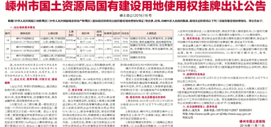 嵊州市国土资源局国有建设用地使用权挂牌出让公告