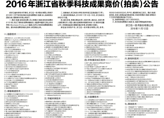 2016年浙江省秋季科技成果竞价(拍卖)公告