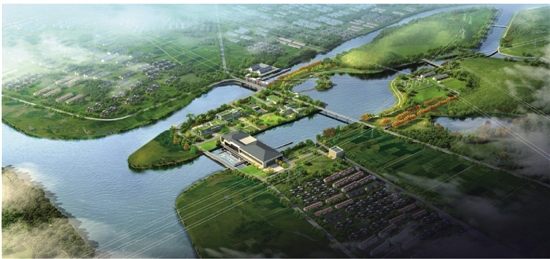 姚江上游西排工程梁湖枢纽鸟瞰图(效果图)