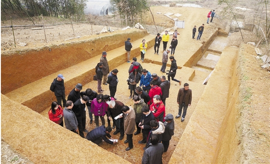 专家考察良渚古城外围水利系统。专家经过实地考察确证,良渚古城外围水利系统是迄今所知中国最早的大型水利工程,也是世界最早的水坝系统。 本报记者 吴煌 摄