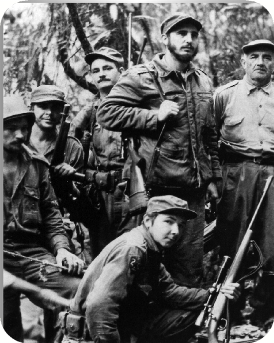 劳尔·卡斯特罗(前)、菲德尔·卡斯特罗(右二)等1958年开展游击战争时的照片。 新华社发