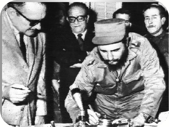 1959年2月16日,菲德尔·卡斯特罗在哈瓦那就任政府总理时在就职文件上签字。 新华社发