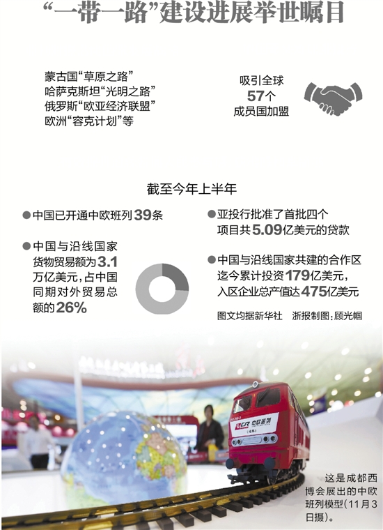 这是成都西博会展出的中欧班列模型(11月3日摄)。
