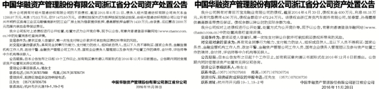 中国华融资产管理股份有限公司浙江省分公司资产处置公告