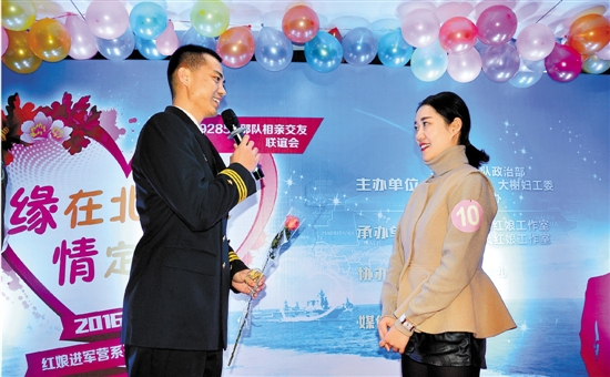 11月26日,在宁波大榭开发区驻军某部队,近百名军地男女青年通过鹊桥会,寻觅他们的另一半。