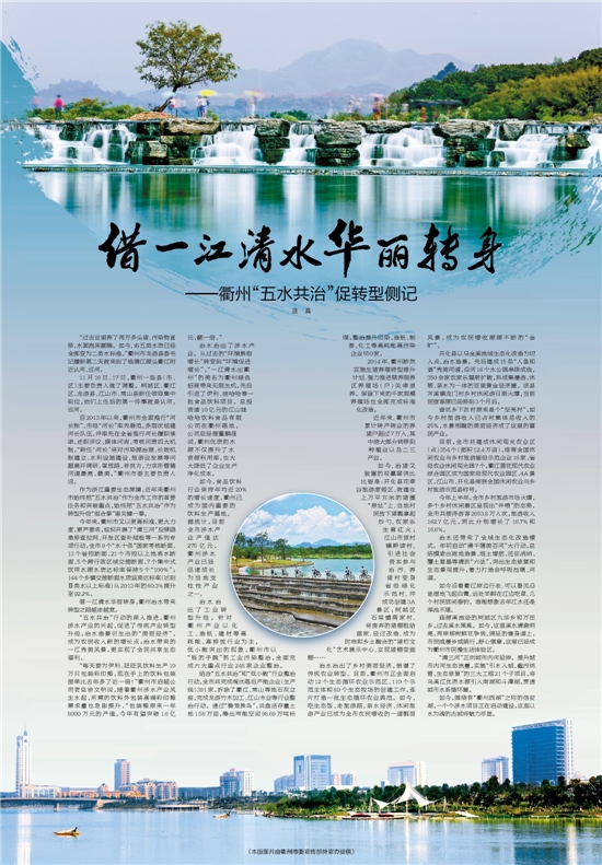 作为浙江重要生态屏障,近年来衢州市始终把“五水共治”作为全市工作的首要任务和突破重点,始终把“五水共治”作为转型升级“组合拳”里关键一拳。