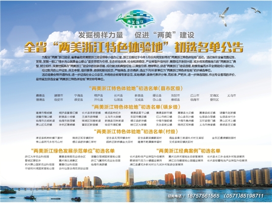 为配合“两美”浙江建设,省委省政府美丽浙江建设领导小组办公室、浙江日报社于今年5月份共同发起寻找“两美浙江特色体验地”活动。活动旨在全省范围征集、发现、发掘一批以“绿水青山就是金山银山”重要思想为引领,生态环境优良、社会和谐稳定、产业转型升级向好、美丽经济蓬勃兴旺、城乡统筹措施得力的“两美浙江”典型,树立标杆,深度挖掘其在“两美浙江”建设中的创新思路、成功做法和典型经验,以典型引领、榜样带动,促进“两美浙江”建设进程,助推我省高水平全面建成小康社会。