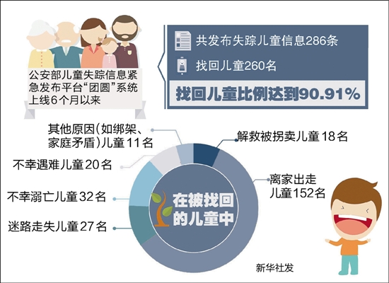 公安部儿童失踪信息紧急发布平台“团圆”系统上线6个月以来