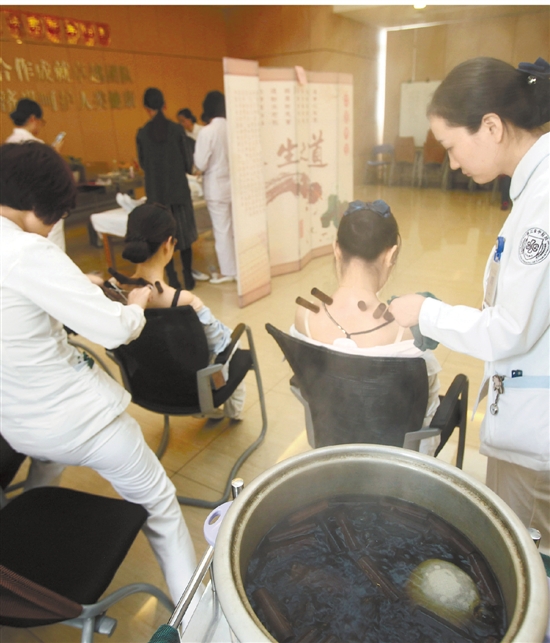 大健康产业,包罗万象。但归根结底,就是为了提高城乡居民的健康水平。图为上周浙江省中医院拔罐治疗颈椎病的场景。 于伟 摄