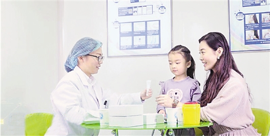 工作人员为儿童做唾液采样。 通讯员 周竟 供图