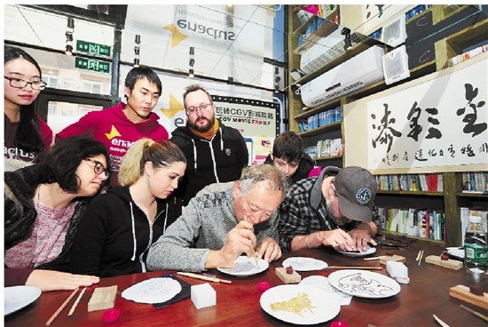 宁波泥金彩漆手艺人李光昭日前受宁波诺丁汉大学邀请,为该校中外学生传授著名非遗泥金彩漆的制作过程。