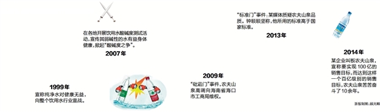 在各地开展饮用水酸碱度测试活动,宣传其弱碱性的水有益身体健康,掀起“酸碱度之争”。