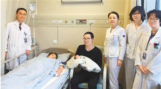 苏伟平抱着刚生下来的女儿,和妻子一起合影。 本报记者 李文芳 摄