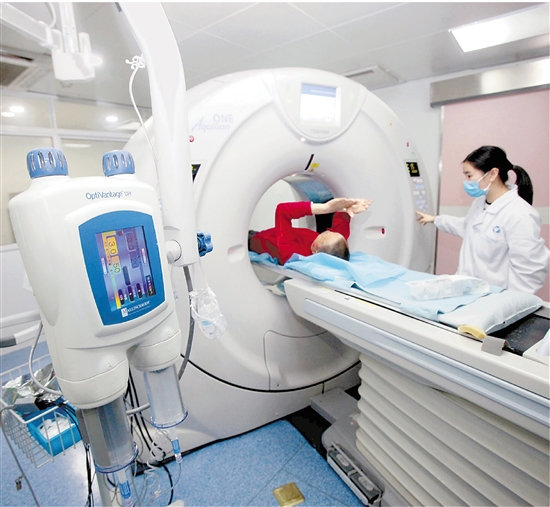 近年来,浙江省中医院加速购置、更新先进的医疗设备,以提升整体医疗水平。图为今年新购买的先进的320排640层螺旋CT,可精确检测心肺异动,且速度快,剂量可调。 于伟 摄