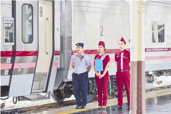 2016年8月29日,在泰国曼谷华兰蓬火车站,工作人员在一列中国制造的新列车前待命,准备进行列车试运行(资料照片)。 新华社发