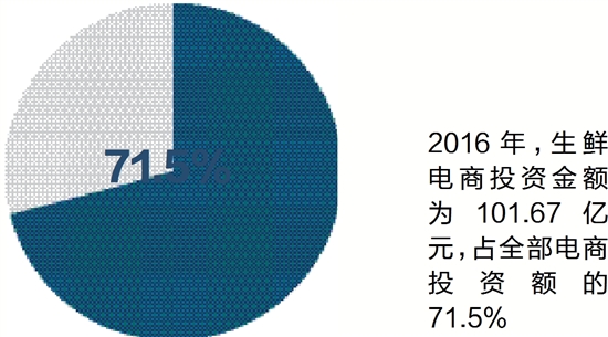 2016年,生鲜电商投资金额为101.67亿元,占全部电商投资额的71.5%