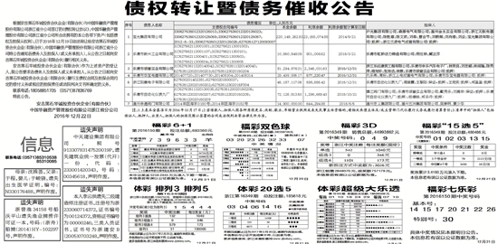 根据安吉黑石华诚投资合伙企业(有限合伙)与中国华融资产管理股份有限公司浙江省分公司签订的《债权转让协议》,中国华融资产管理股份有限公司浙江省分公司所合法拥有的本公告项下资产(包括债权及担保从权利),已于2016年12月19日依法转让给安吉黑石华诚投资合伙企业(有限合伙),中国华融资产管理股份有限公司浙江省分公司特公告通知各债务人及担保人(或义务承担人),从公告之日起向安吉黑石华诚投资合伙企业(有限合伙)履行相关义务。