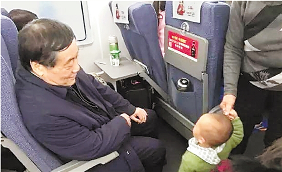 12月22日上午,在杭州开往义乌的高铁上,网友偶遇著名浙商宗庆后。他轻松自在地坐在二等座上,还逗弄着邻座的小孩。网友摄下照片,发在网上。浙商的勤俭低调由此展露无遗。