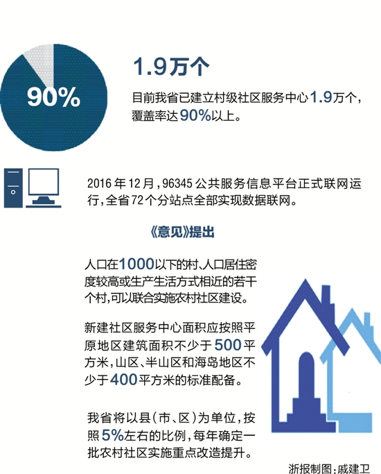 目前我省已建立村级社区服务中心1.9万个,覆盖率达90%以上。