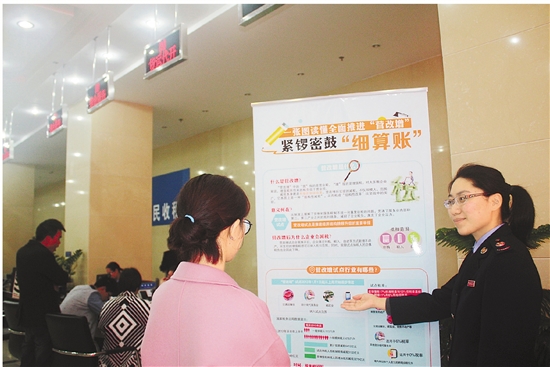 三门县国税局工作人员帮纳税人计算“营改增”详细账目。
