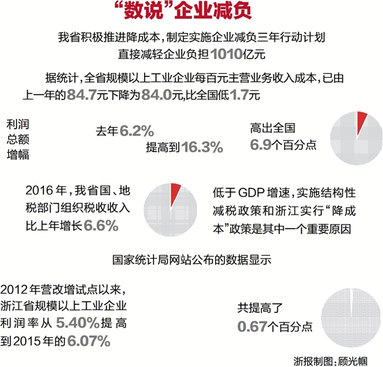 低于GDP增速,实施结构性减税政策和浙江实行“降成本”政策是其中一个重要原因