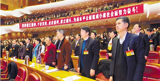 1月20日下午,省十二届人大五次会议圆满完成预定的各项任务,在省人民大会堂胜利闭幕。 本报记者 李震宇 摄
