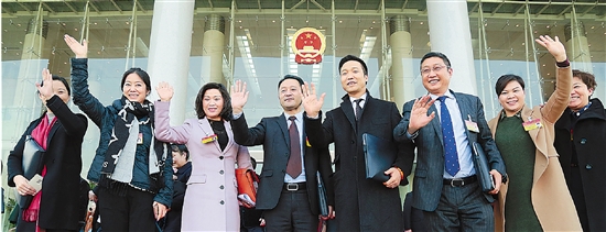1月20日下午,省十二届人大五次会议胜利闭幕,代表们满怀信心步出会场。
