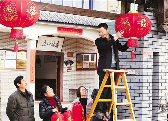 在安吉县天荒坪镇余村,家家户户挂灯笼、贴春联,开开心心过大年。绿水青山就是金山银山,余村村民通过开农家乐,发展休闲经济,享受到了实实在在的生态红利。 本报记者 钱璐斌 通讯员 夏鹏飞 摄