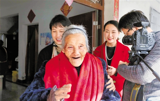 大年初一,浙报集团记者来到杭州下沙给百岁老人寿又姑拜年。