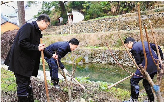 上班第一天,开化县的党员干部种下树苗,为生态建设添砖加瓦。 江飞 摄