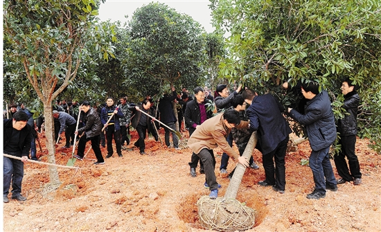 2月3日,新春佳节后上班第一天,东阳市机关干部在江北街道猴塘公园参加义务植树活动。 包康轩 摄