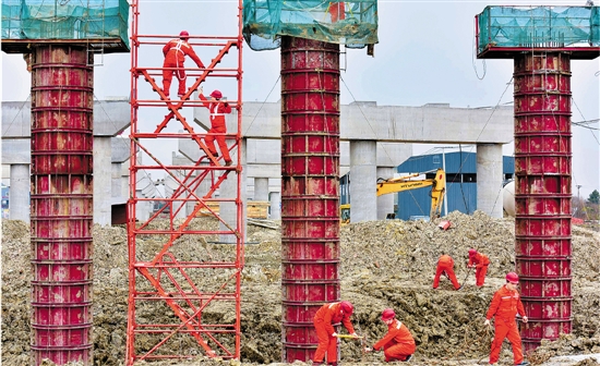 2月3日,省重点工程杭州湾大桥北接线(二期)工程TJ01标段工地上,建设者正在紧张施工。春节期间,这个标段的建设者放弃和家人团圆坚守工地,保障工程建设的关键节点不停工。
