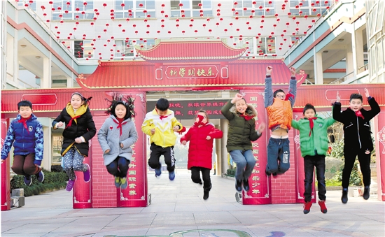 2月12日,是杭州市采荷第二小学新学期学生报到注册的日子。同学们一进校门就看到学校精心布置的“大宅门”,两旁贴着一副对联。“大宅门”前,有家长为孩子留影,有班主任为全班同学拍集体照,展示新学期新气象。 通讯员 赵婷红 摄 |
