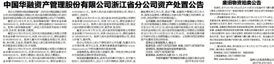 中国华融资产管理股份有限公司浙江省分公司资产处置公告