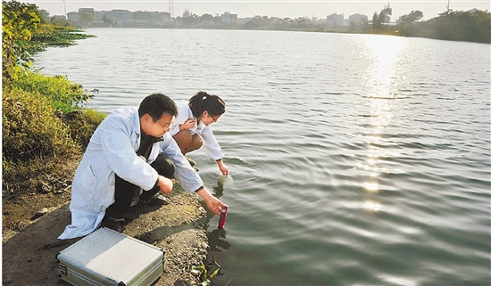 环保技术人员在浦阳江流域检测水质。 徐德文 摄