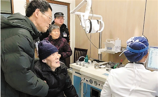 社工与邻居一起陪同误吞枣核的俞大伯接受检查。 (大木桥社区 供图)