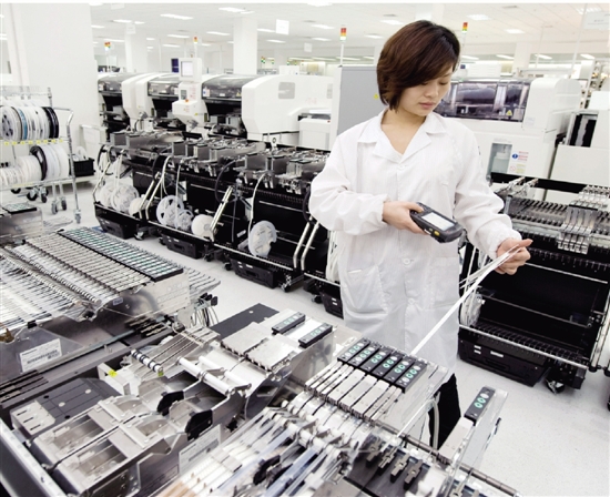 均胜集团工人在为产品表面贴装线备料