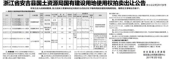 浙江省安吉县国土资源局国有建设用地使用权拍卖出让公告