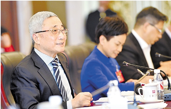 我省全国人大代表认真审议政府工作报告。 本报记者 梁臻 摄