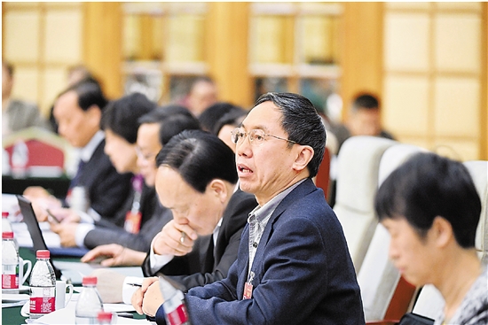 3月9日上午,浙江代表团举行全体会议,审议全国人大常委会工作报告。 本报记者 梁臻 摄