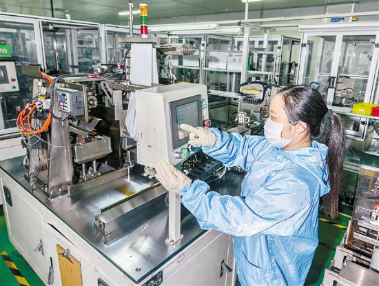 长兴县浙江努奥罗新能源科技有限公司车间,正在生产铁锂动力电池。“努奥罗”积极投入新产品研发,转型升级显效益。 县委报道组 谭云俸 张泽民 摄