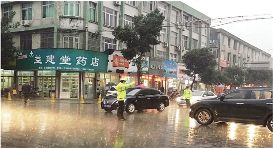春雨中,苍南交警坚持疏导交通。