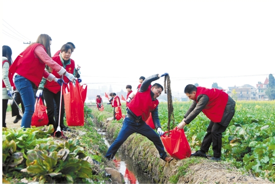 寿昌镇,清理沟渠的志愿者在行动。宁文武 摄