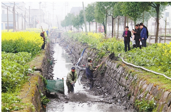 绍兴市国土资源局干部深入田间地头排查劣V类水,助力美丽乡村建设。 韩国强 摄