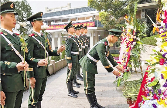 4月1日,武警杭州市支队的100多位官兵在杭州市革命烈士纪念馆举行缅怀蔡永祥烈士活动。 本报记者 姚群 实习生 石怡锋 通讯员 陈志法 摄